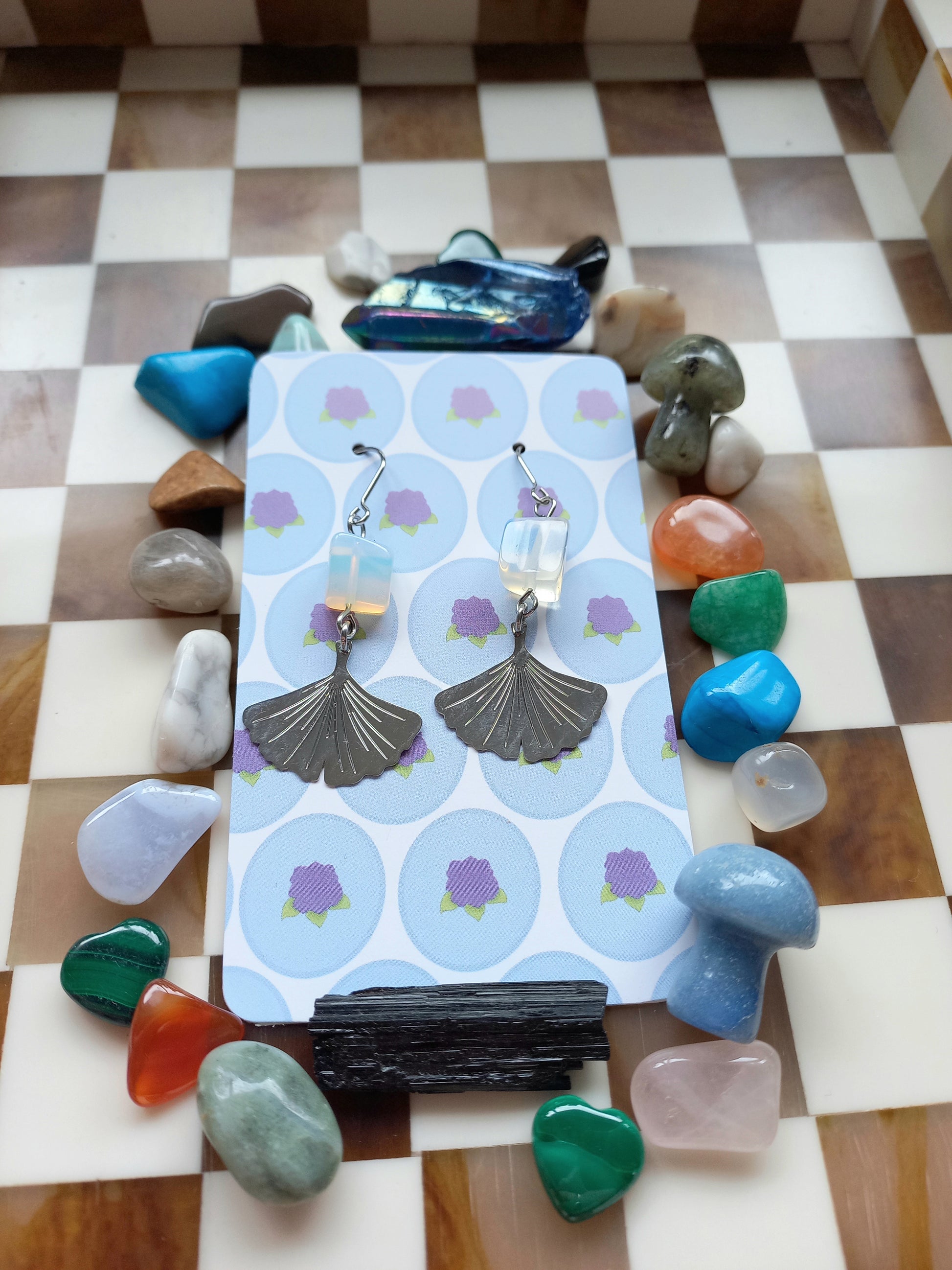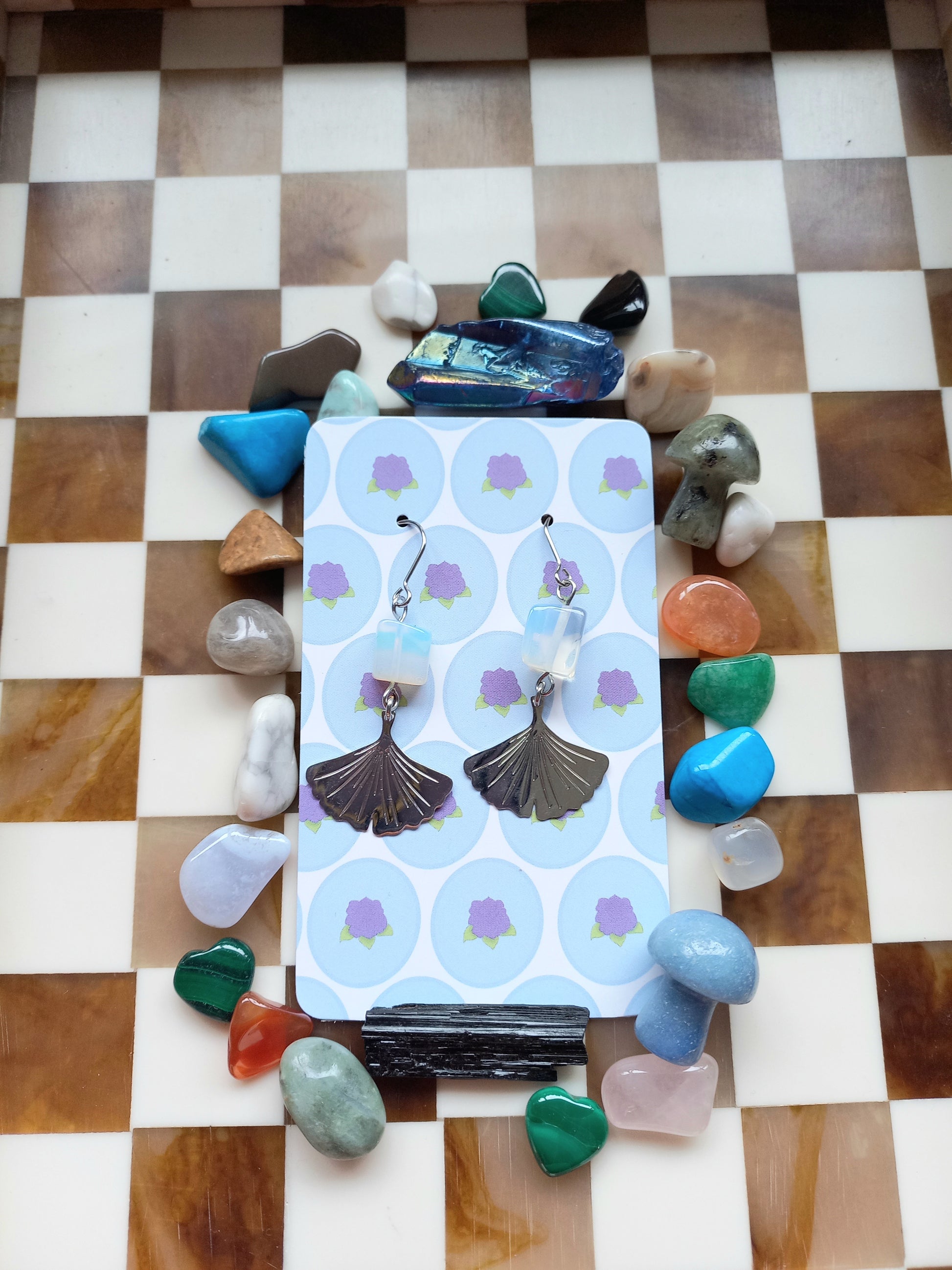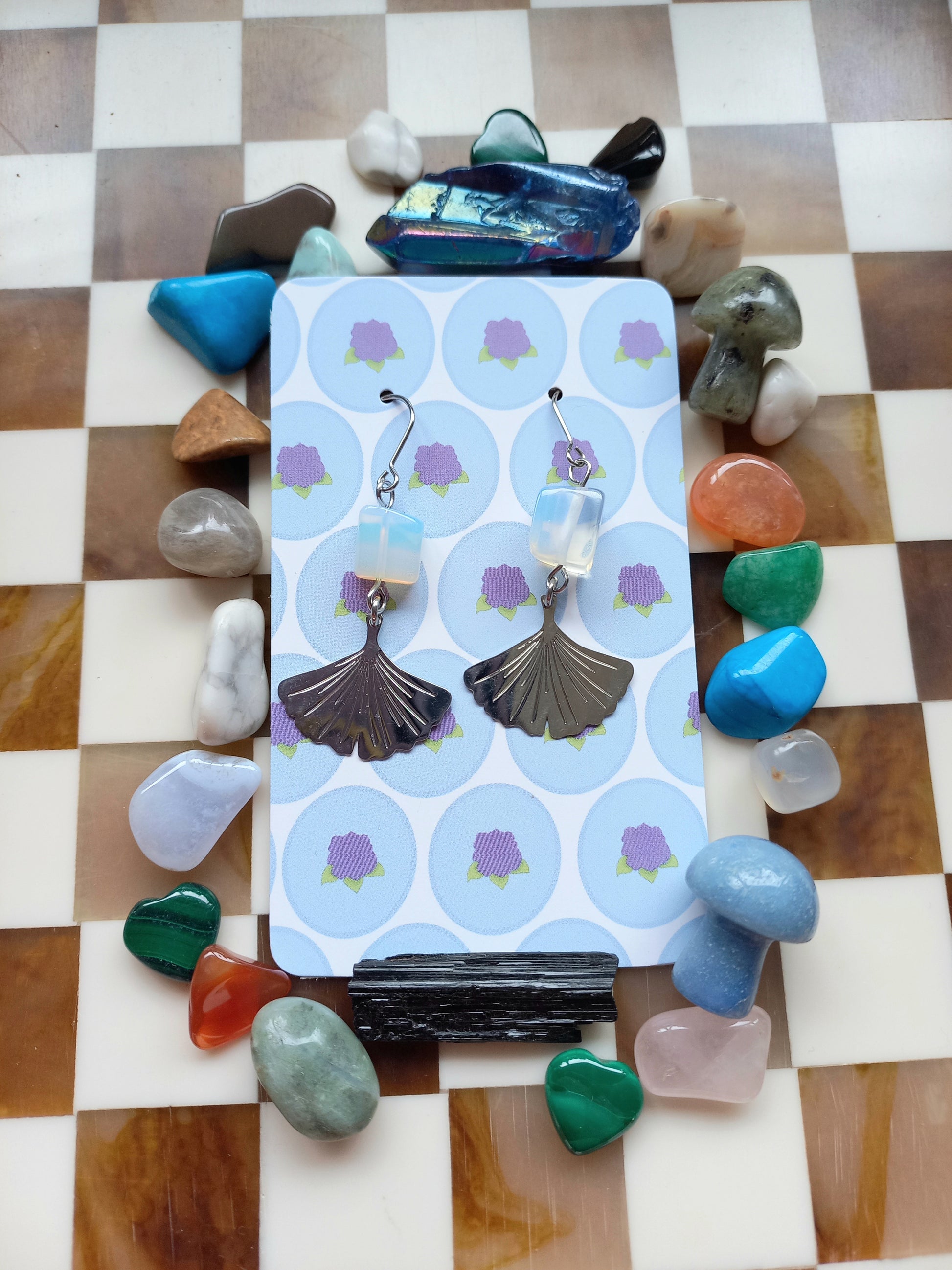 ✨ Opalite Ginkgo Leaf Earrings 🍃