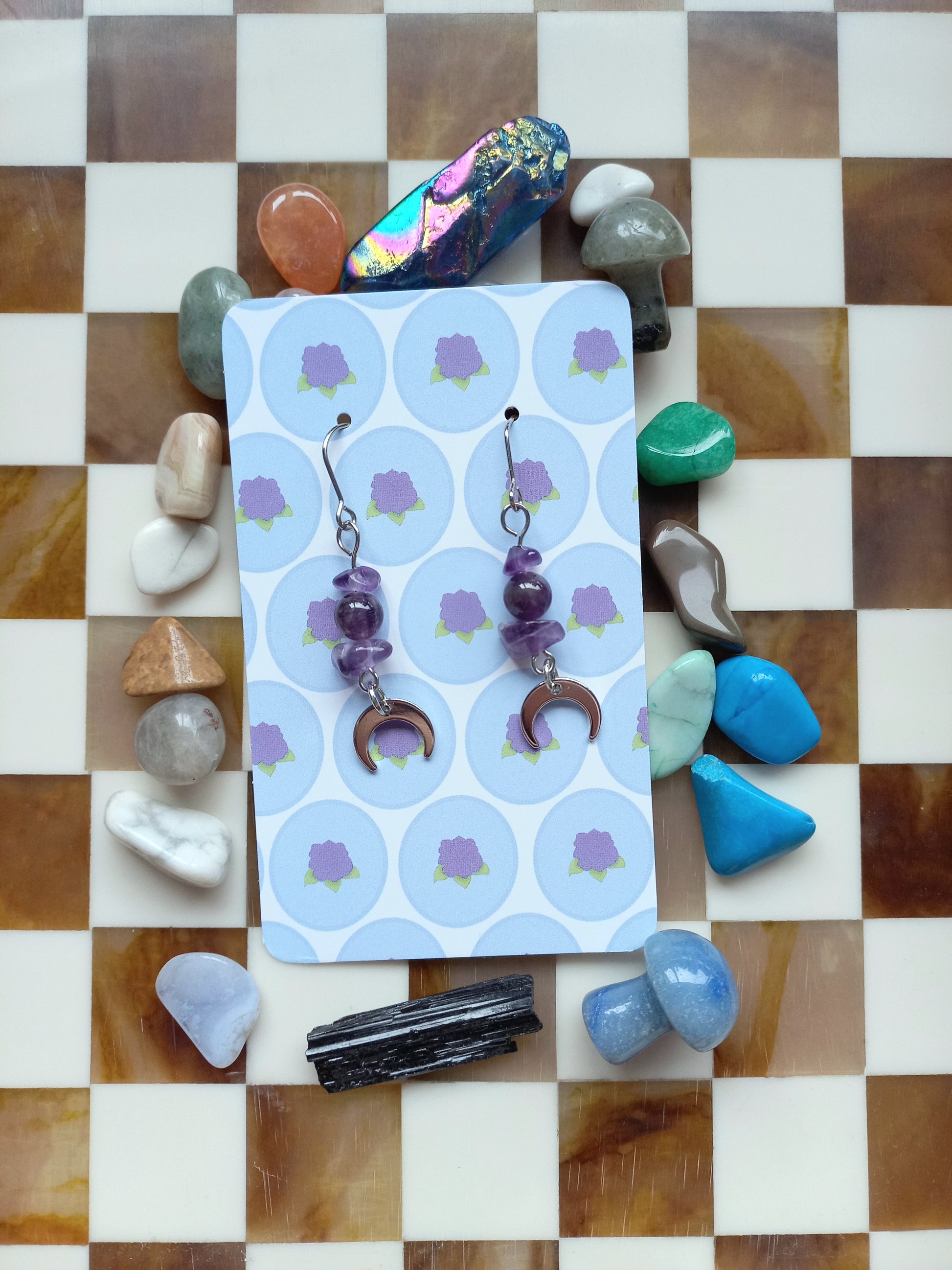 They measure 5cm and hang from stainless steel hooks, so they're perfect for everyday magic or when you want to feel a little more witchy. Whether you're a February baby or just love purple (who doesn't?!), these are for you! πŸ’«