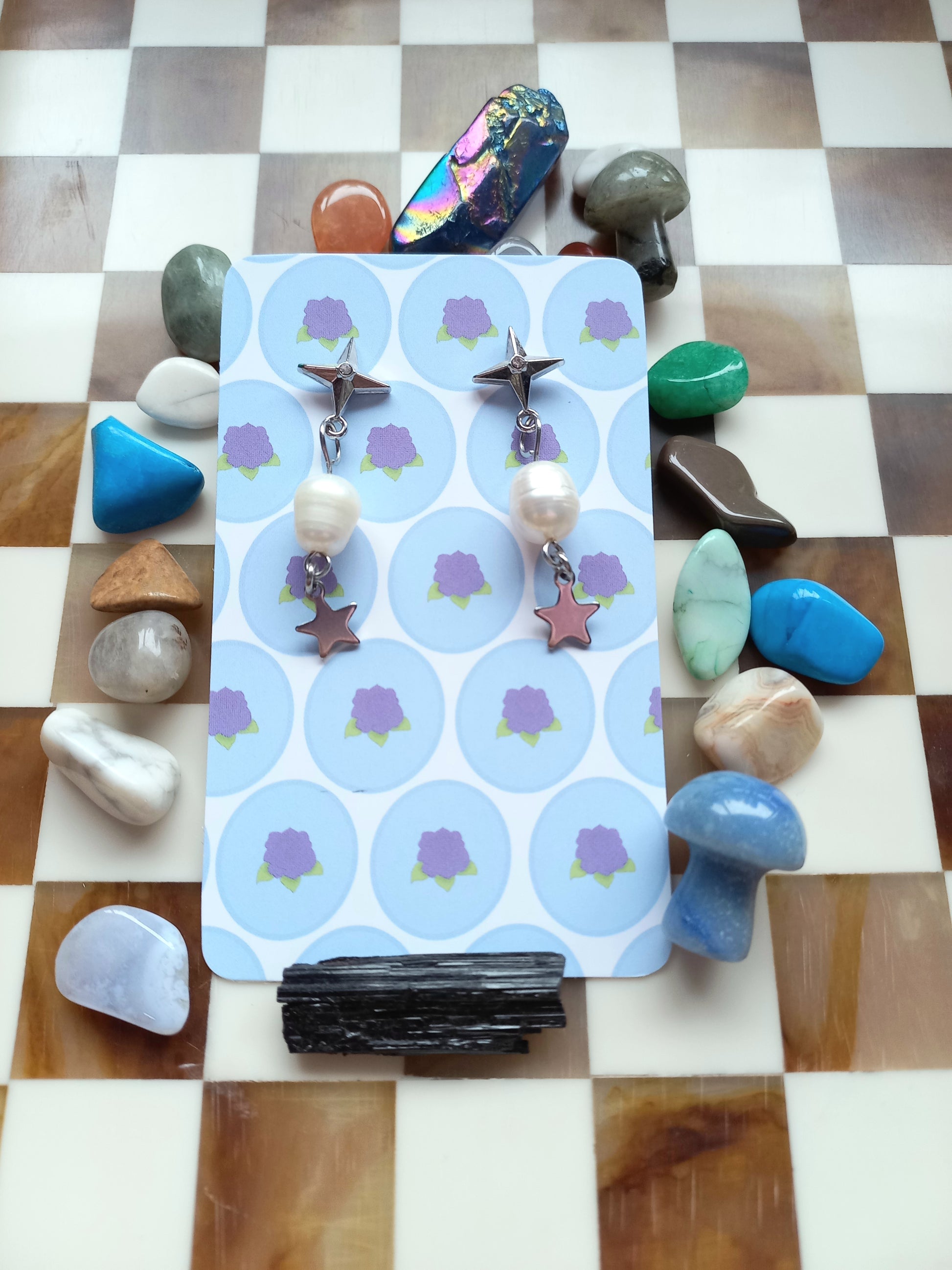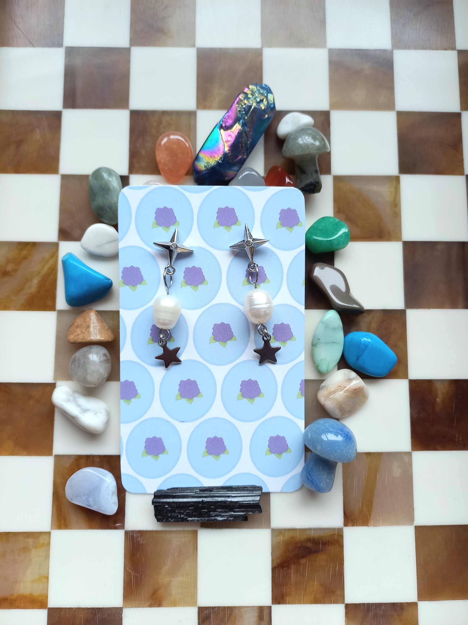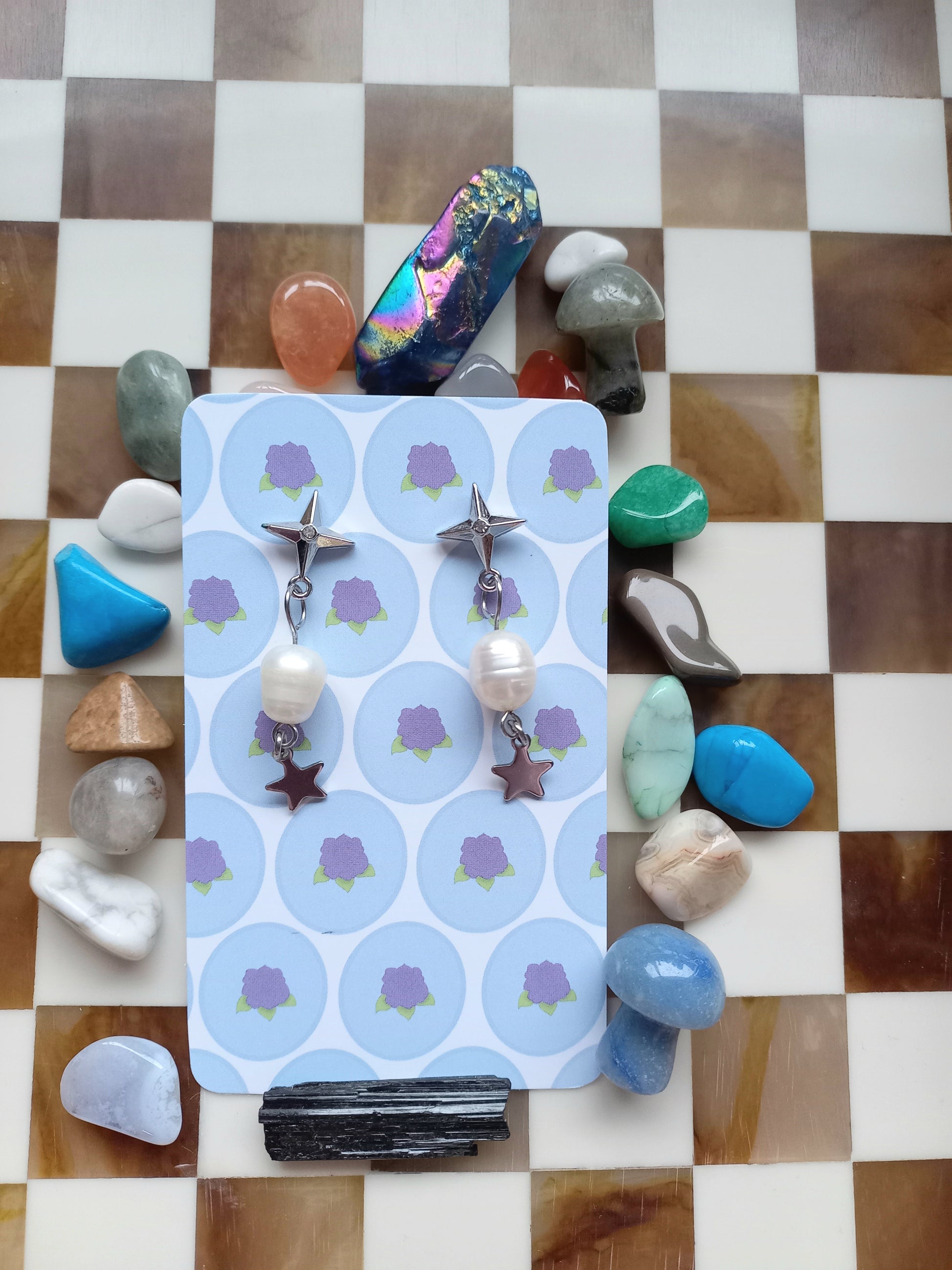 ⭐ Freshwater Pearl Double Star Earrings ✨